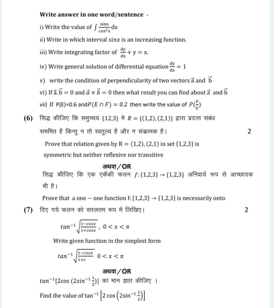 एमपी बोर्ड कक्षा 12वीं गणित विषय से संबंधित इस आर्टिकल में जो भी प्रश्न बताए गए हैं वह सभी केवल इंपोर्टेंट प्रश्न है जो बोर्ड परीक्षा को मध्य नजर रखते हुए महत्वपूर्ण है और बोर्ड पेपर में पूछे जा सकते हैं इसीलिए इस आर्टिकल में बताए गए हैं कोई भी विद्यार्थी से रियल पेपर ना समझे यह केवल महत्वपूर्ण प्रश्न पत्र है।