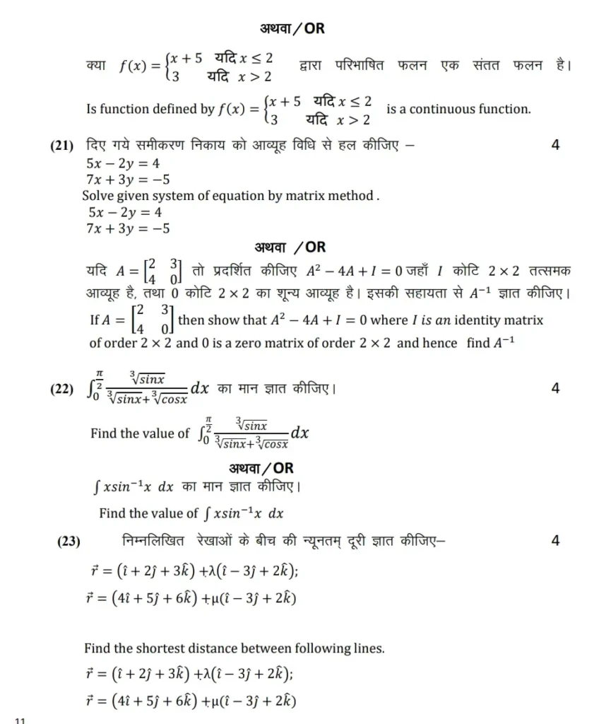 एमपी बोर्ड 12वीं गणित वार्षिक पेपर 2026