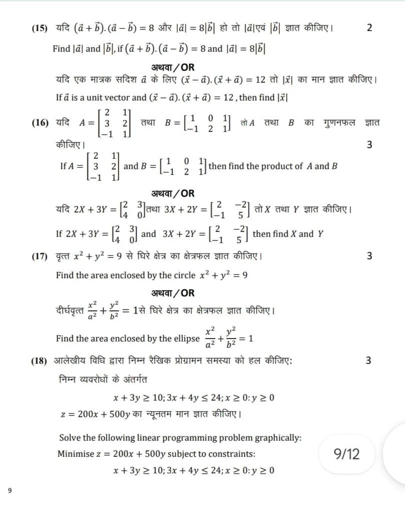 एमपी बोर्ड कक्षा 12वीं गणित वार्षिक पेपर 2026 pdf डाउनलोड करें